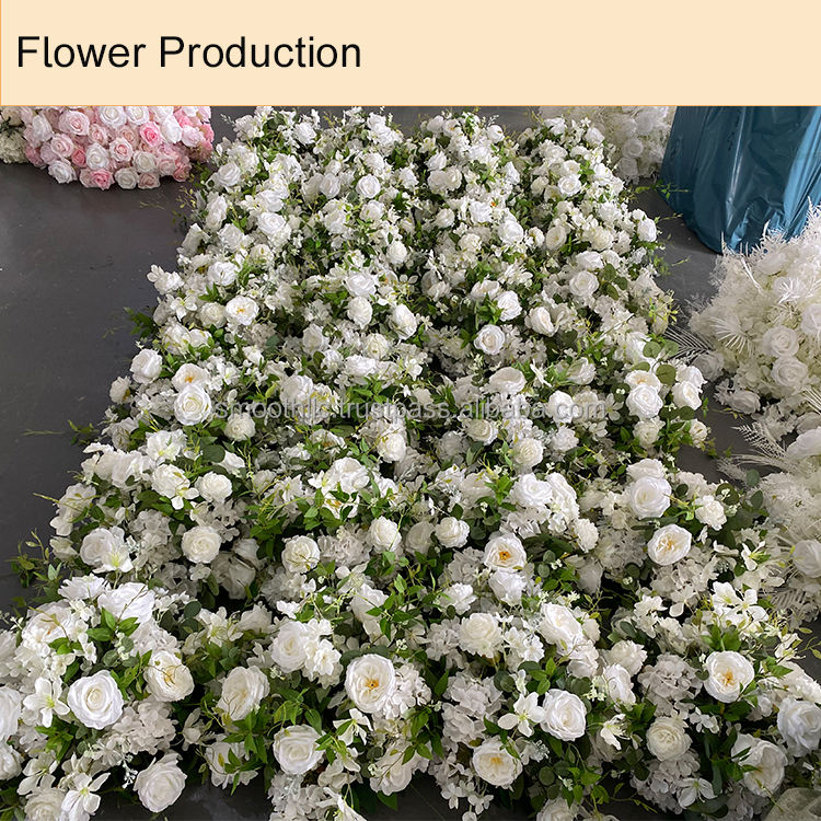 ดอกกุหลาบสีขาวเรียบและธงสีเขียวยาวแถวดอกไม้ซุ้มงานแต่งงานดอกไม้ประดิษฐ์พื้นหลังของตกแต่งผนังขอ