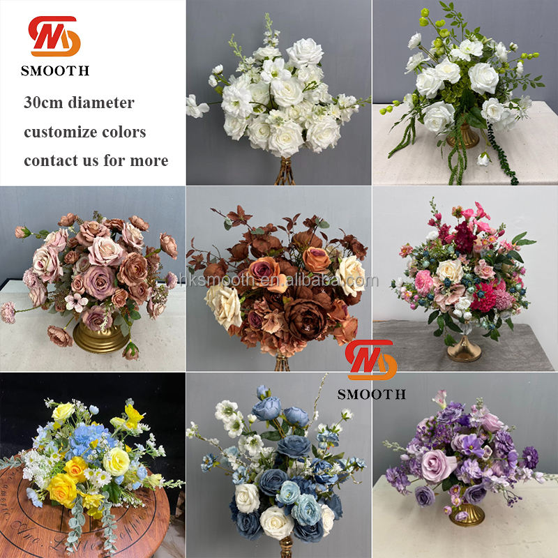 ช่อดอกไม้ประดิษฐ์ขนาดเล็ก 30 ซม. สำหรับตกแต่งโต๊ะงานแต่งงาน ขายส่งแบบเรียบหรู