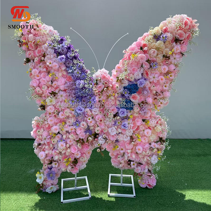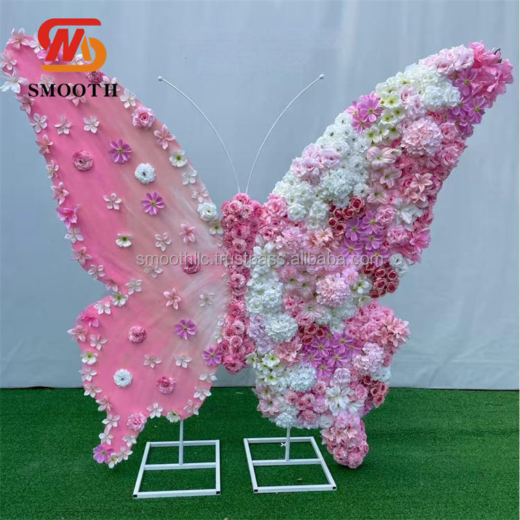 อุปกรณ์ตกแต่งฉากหลังรูปดอกไม้ผีเสื้อเทียมสีชมพู6FT เรียบสำหรับงานเลี้ยงวันเกิด