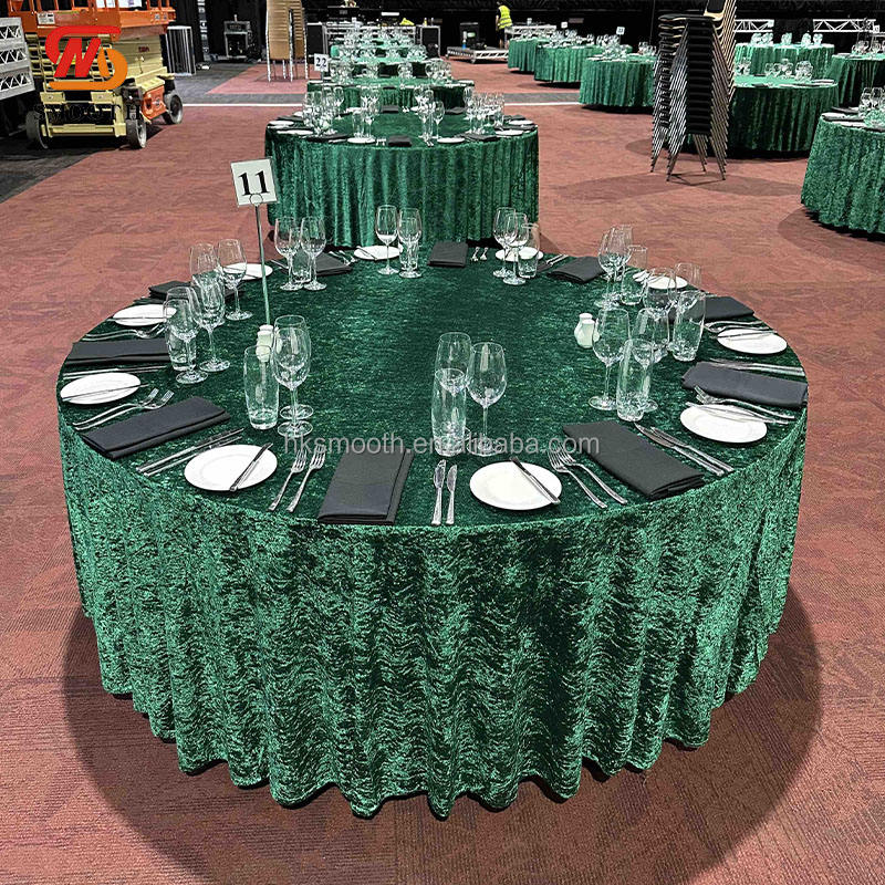 ชื่อสินค้า:ผ้าปูโต๊ะกำมะหยี่สีเขียวมรกตทรงกลมแบบย่น