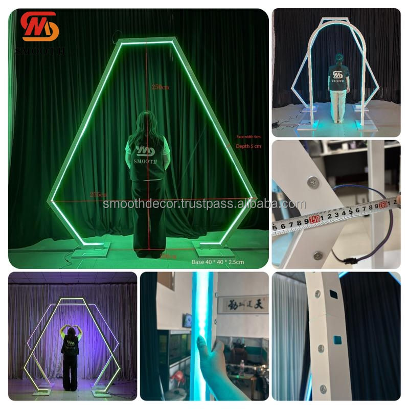 ฉากหลังซุ้มแต่งงานทำจากเหล็กพร้อมอุโมงค์ LED และกระจกสำหรับเวที
