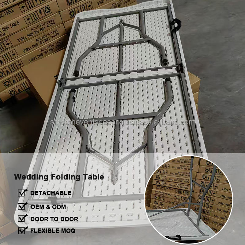 โต๊ะพลาสติกสีขาวพับได้ทรงสี่เหลี่ยมเรียบสำหรับงานกลางแจ้ง