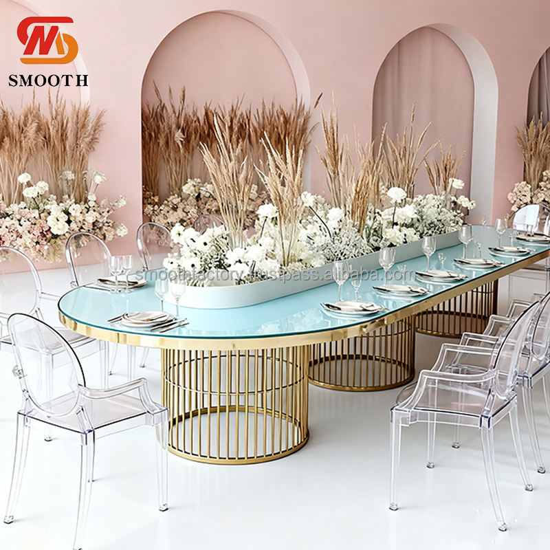 โต๊ะรับประทานอาหารสแตนเลสสีทองสำหรับงานแต่งงานโต๊ะรับประทานอาหารเฟอร์นิเจอร์สำหรับงานแต่งงาน