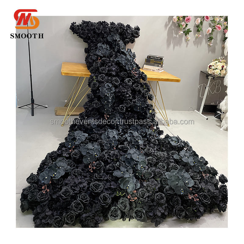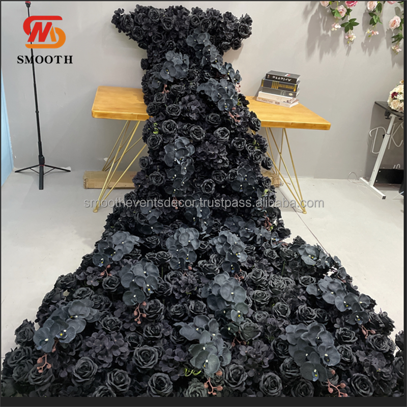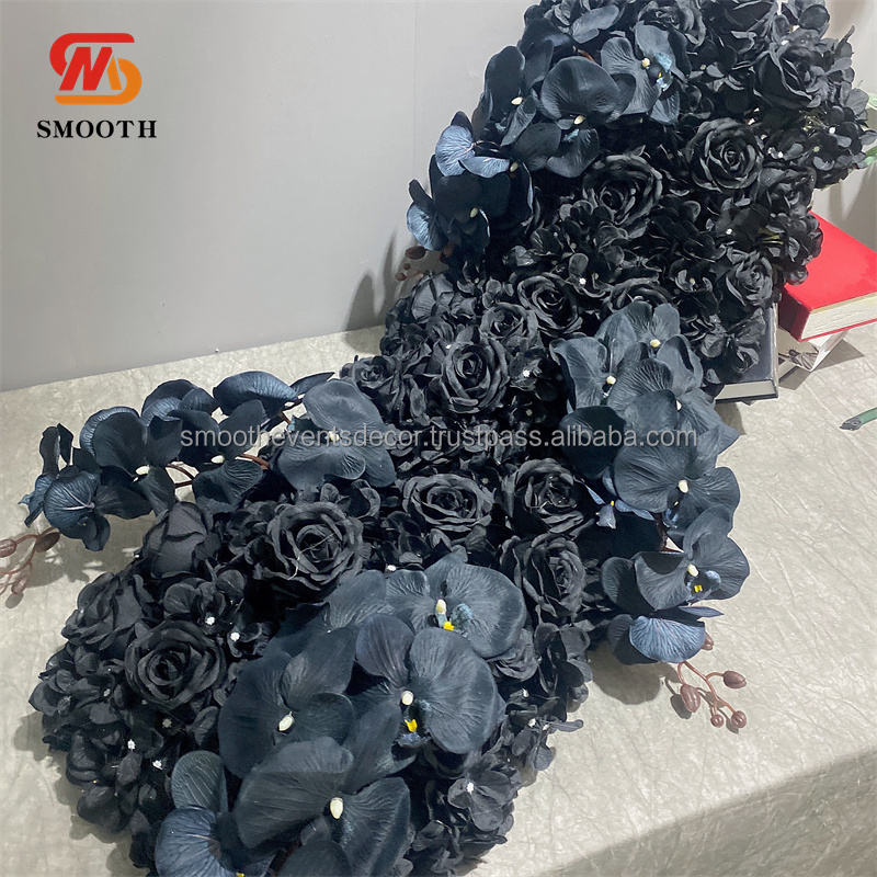 ผ้าคาดโต๊ะลายดอกกล้วยไม้เทียมสีดำมีเอกลักษณ์สำหรับตกแต่งงานอีเว้นท์