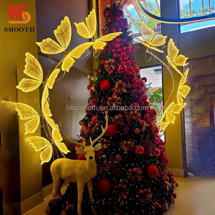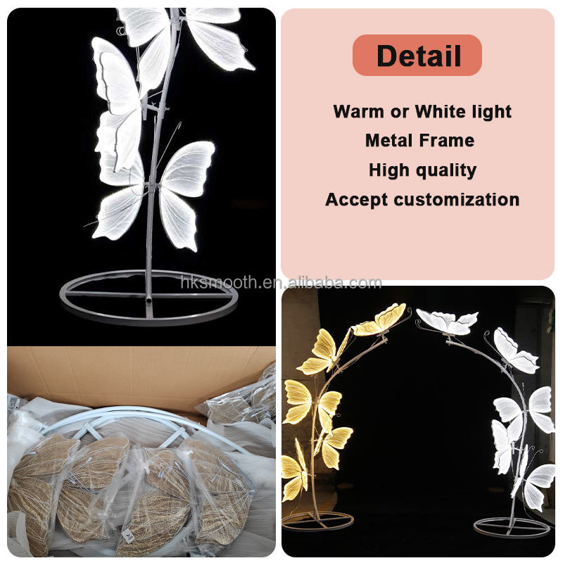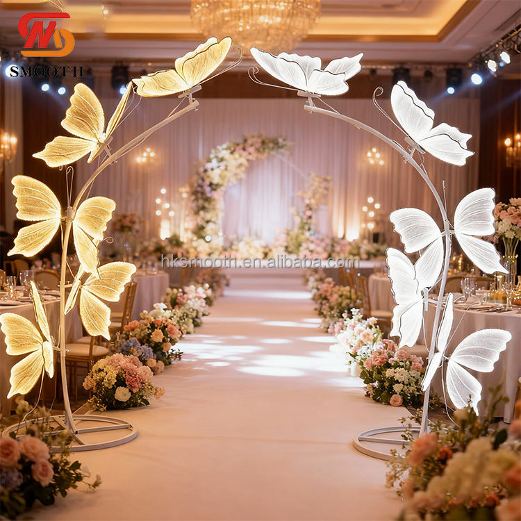 ซุ้มแต่งงานรูปผีเสื้อแบบเรียบหรูพร้อมไฟ LED แสงวอร์มไลท์ สำหรับตกแต่งงานแต่งงาน งานคริสต์มาส และทางเดิน