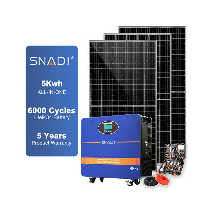 สถานีพลังงานแสงอาทิตย์ SNADI 5KW ระบบพลังงานแสงอาทิตย์แบบออฟกริด ระบบแบตเตอรี่ลิเธียมออลอินวัน เครื่องกำเนิดพลังงานแสงอาทิตย์สำหรับบ้าน