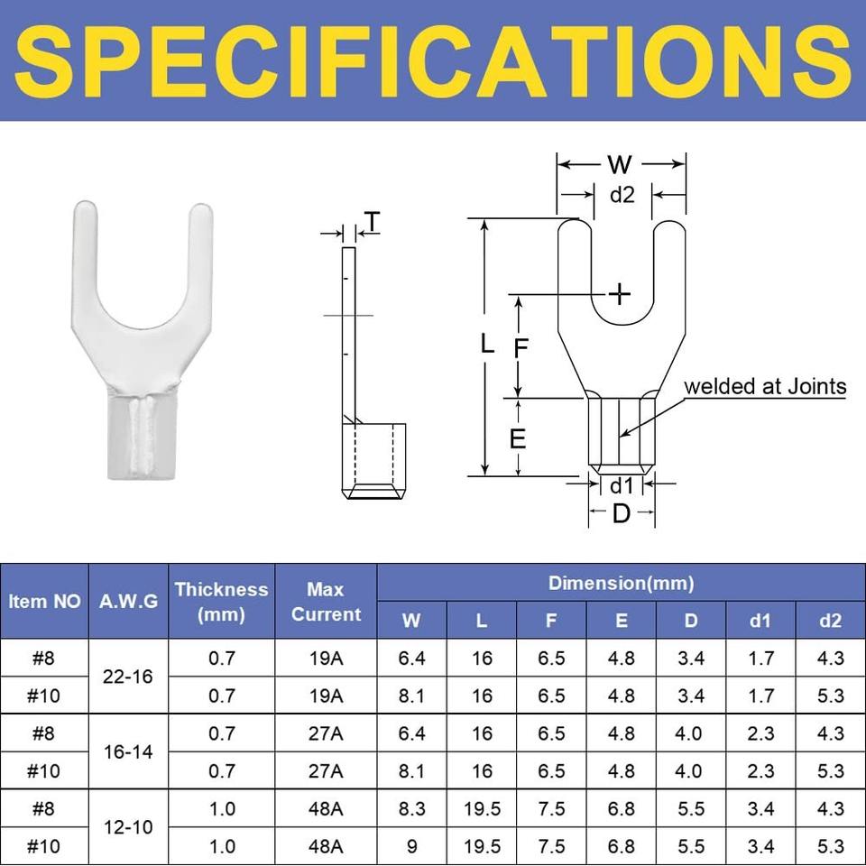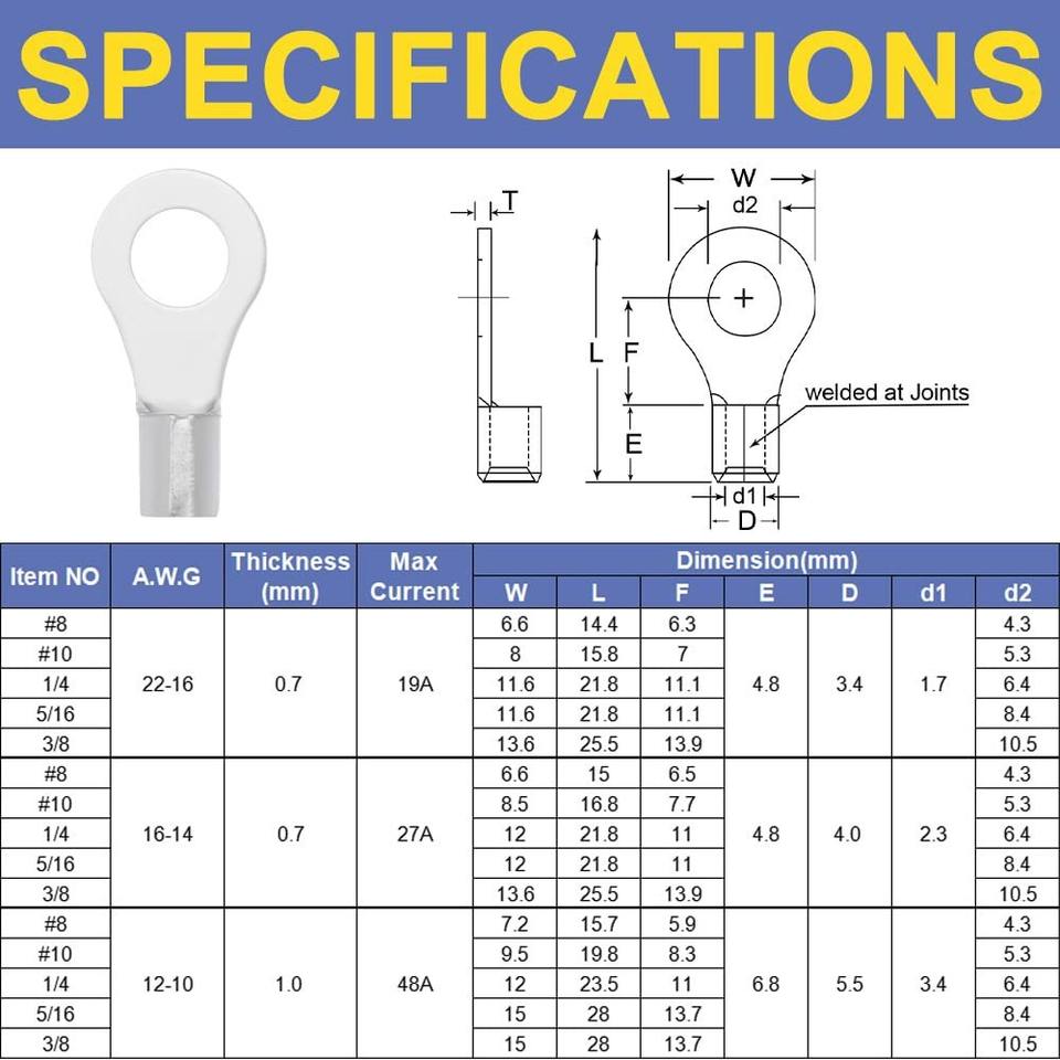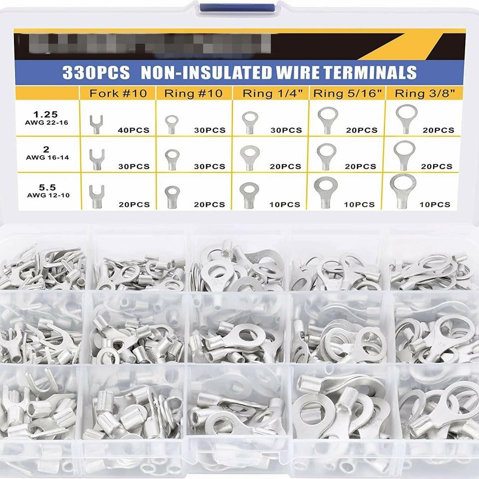 SNB ขั้วต่อสายไฟแบบไม่หุ้มฉนวน 330 ชิ้น ชนิดแหวน ชนิดง่าม ทองแดงบริสุทธิ์ AWG 12-22 ชุดขั้วต่อ