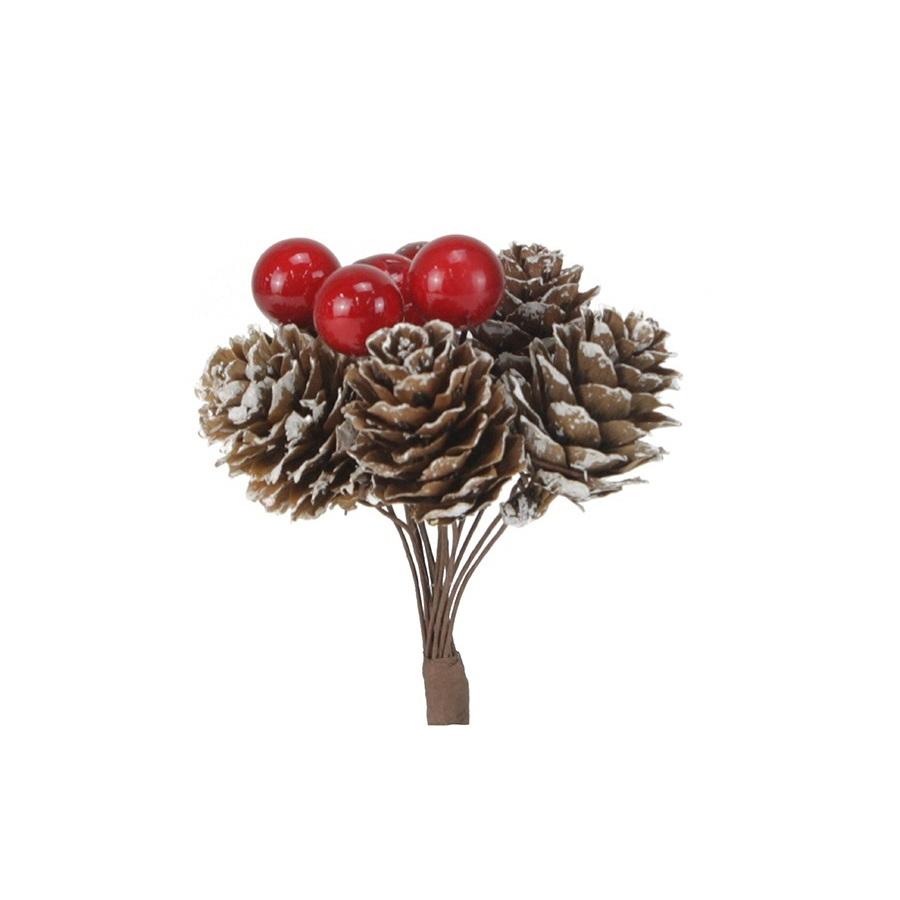 กิ่งไม้ที่ปกคลุมด้วยหิมะพร้อมลูกสนธรรมชาติและผลเบอร์รี่สีแดง สูง 16 ซม.