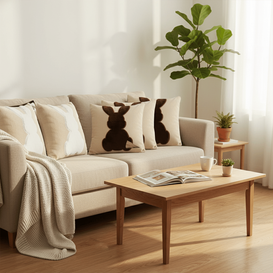 SOGA ชุดปลอกหมอนกระต่าย 4 ชิ้น ขนาด 45 ซม. สีขาวและหมอนอิงตกแต่งรูปเงากระต่ายสำหรับโซฟาและเตียง รุ่น D0100X31TR2