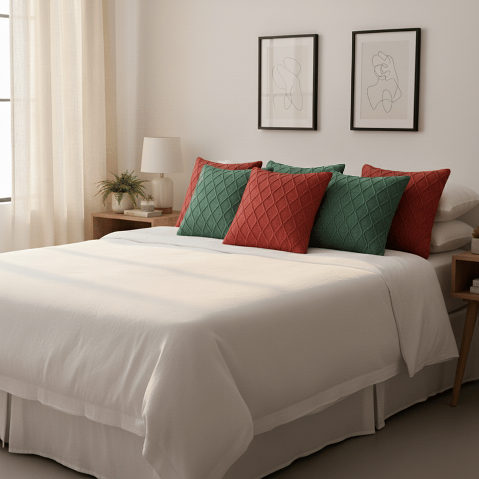 SOGA ชุดปลอกหมอน 6 ชิ้น ขนาด 45 ซม. สีแดงคลาสสิกและสีเขียวฟอเรสต์ ลายถักเพชร สำหรับตกแต่งและหมอนอิง รุ่น D0100X3Z618