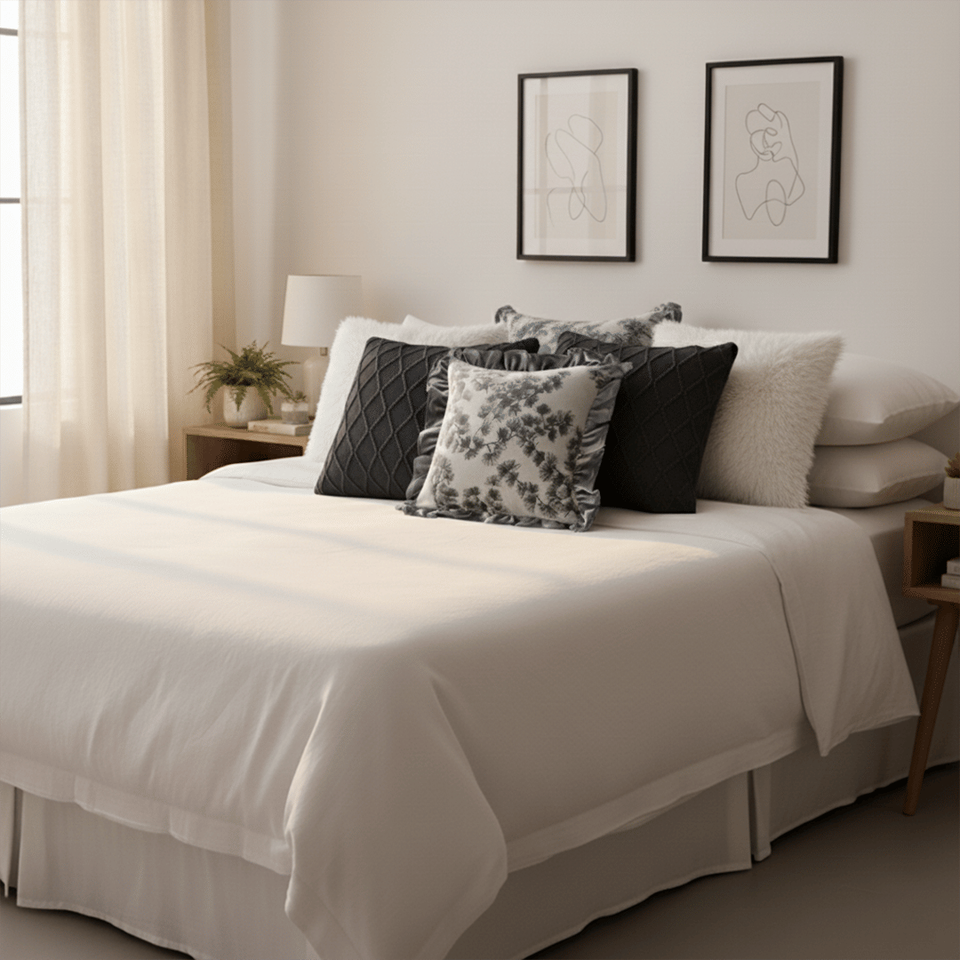 ชุดปลอกหมอนตกแต่ง SOGA 6 ชิ้น สีขาวเทา ลายดอกไม้แบบมีระบาย ผ้าถักลายเพชร สำหรับโซฟาห้องนั่งเล่น รุ่น Model
