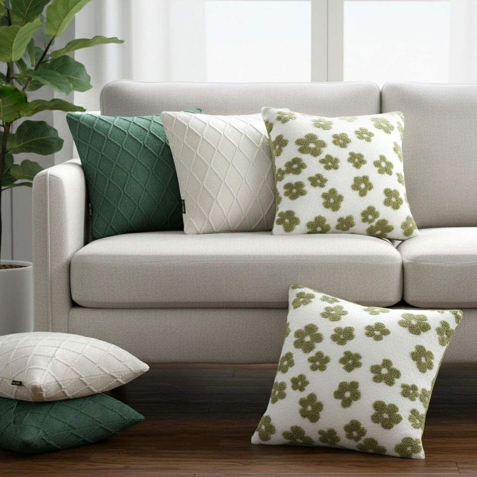 SOGA 6-Piece Garden Bloom Cable Knit Diamond Pillow Cover Set Green and White Decorative & Throw Pillows