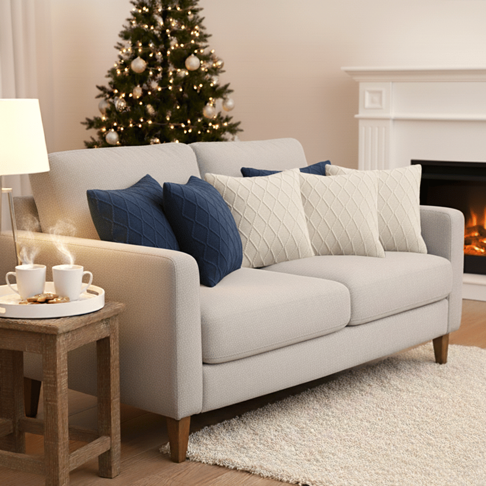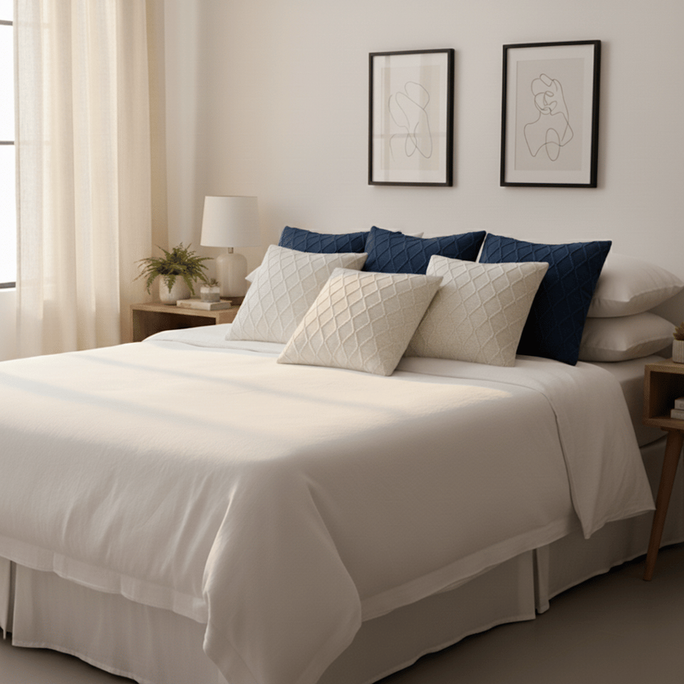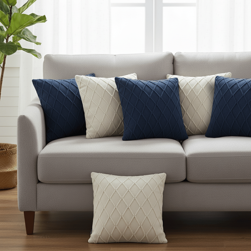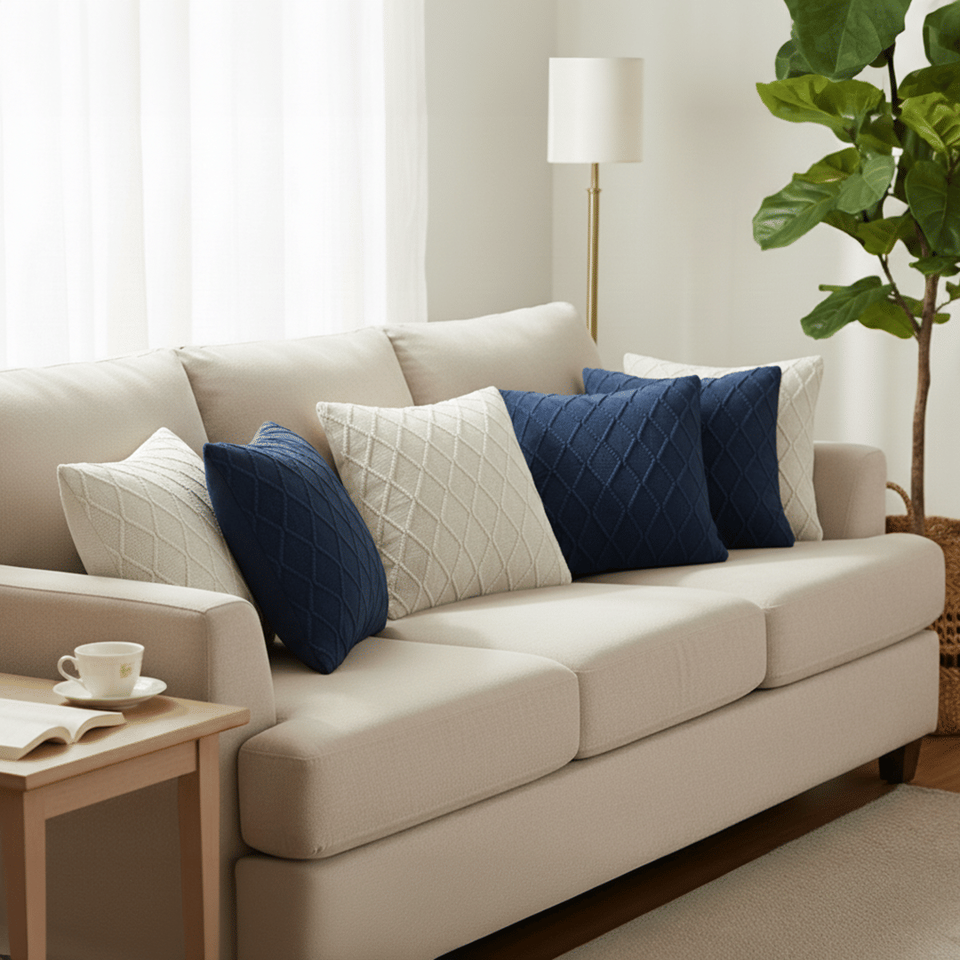 SOGA ชุดปลอกหมอน 6 ชิ้น ขนาด 45 ซม. ผ้าถักลายเคเบิลสีเทาชาร์โคล 3 ชิ้น และผ้าถักลายเพชรสีขาวครีม 3 ชิ้น สำหรับโซฟาห้องนั่งเล่น
