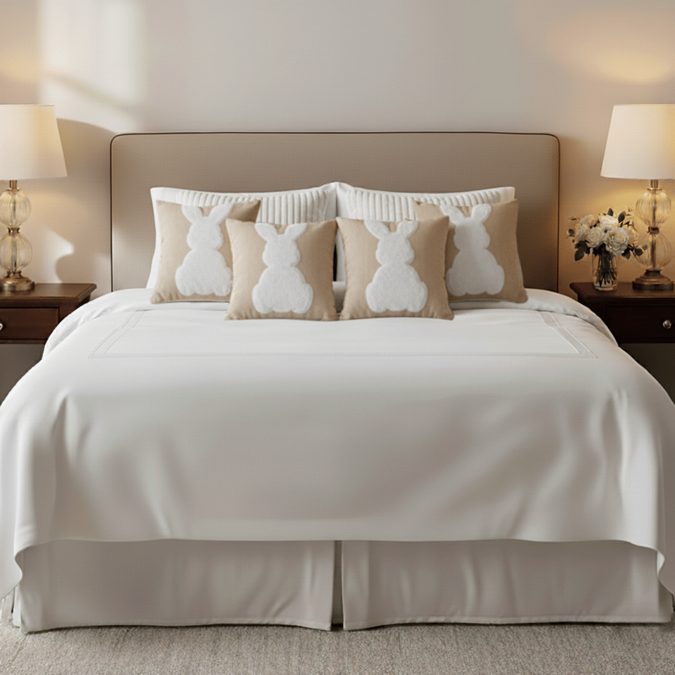 SOGA 6 ชิ้น 45 ซม. สีขาวและสีครีมลายกระต่ายตกแต่งโซฟาห้องนอนหมอนอิง 2 ชิ้นรุ่น D0100X3ZBGJ
