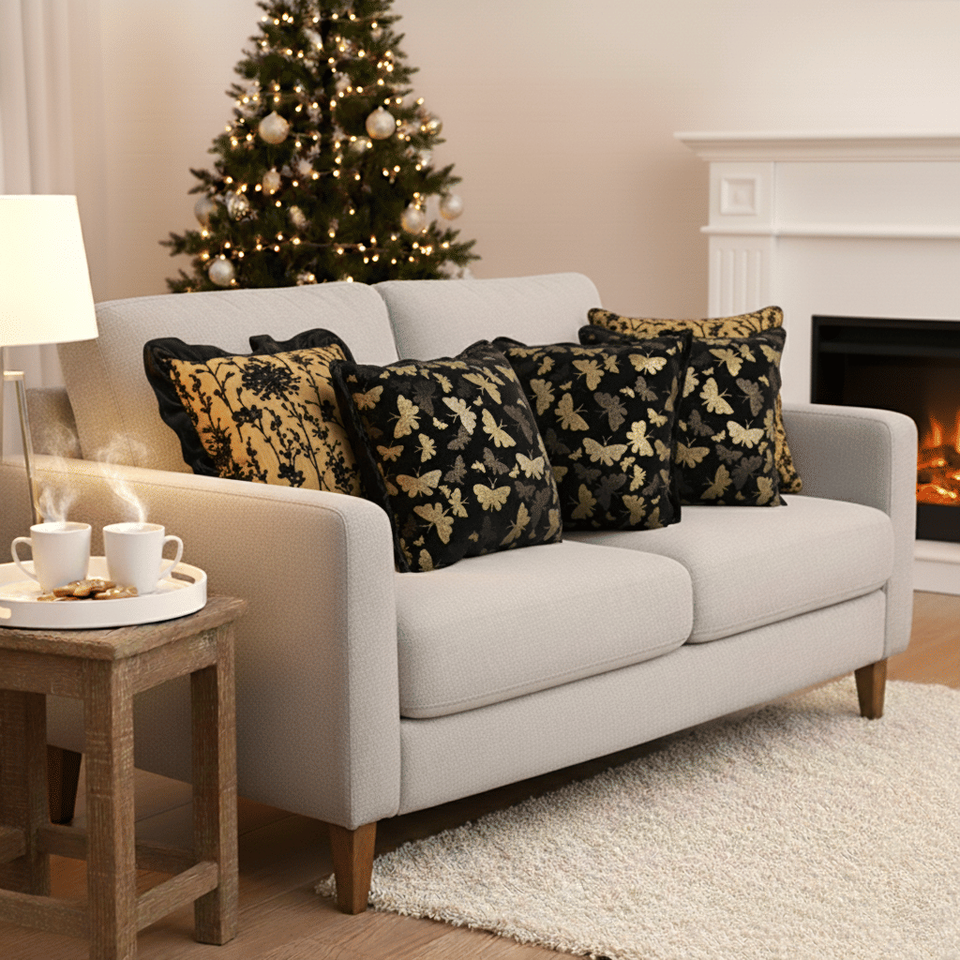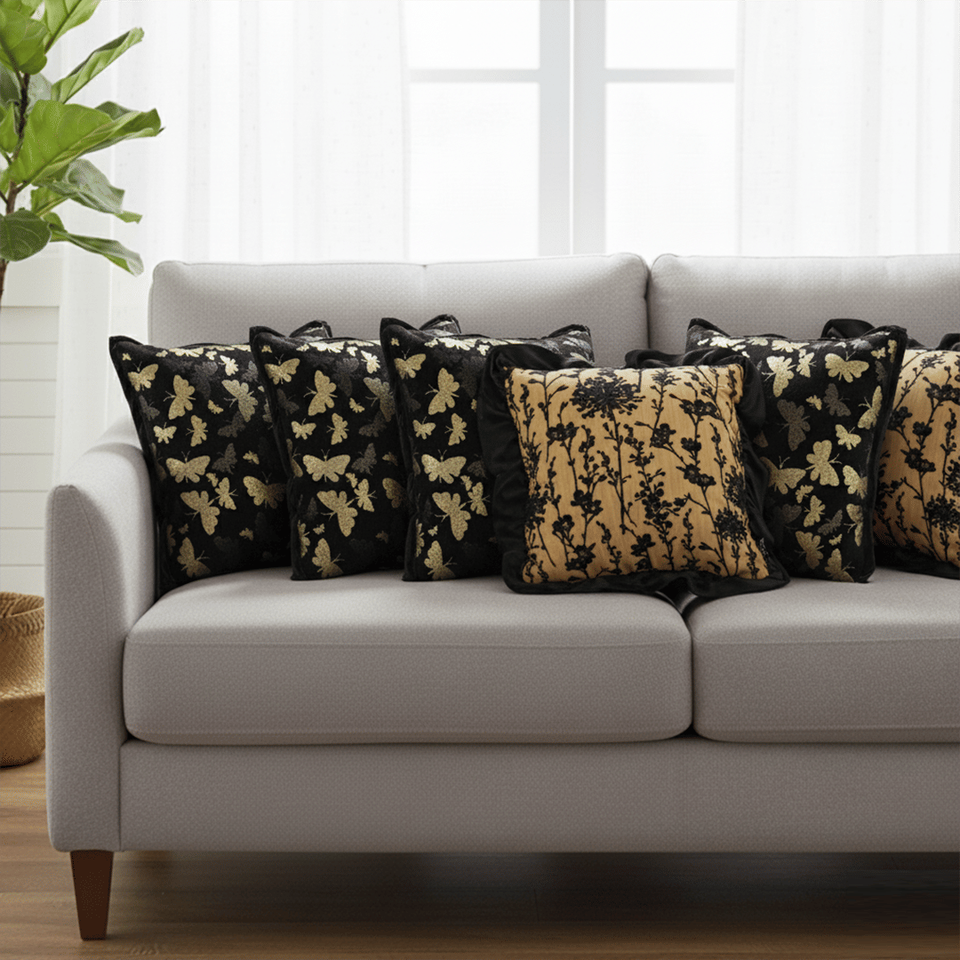 SOGA หรูหรา 6 ชิ้นชุดปลอกหมอน 45 ซม.วินเทจ บัตเตอร์ฟลาย 2 สีดำทองดอกไม้กำมะหยี่รุ่น D0100X3Z6BX สำหรับห้องนั่งเล่นโซฟา