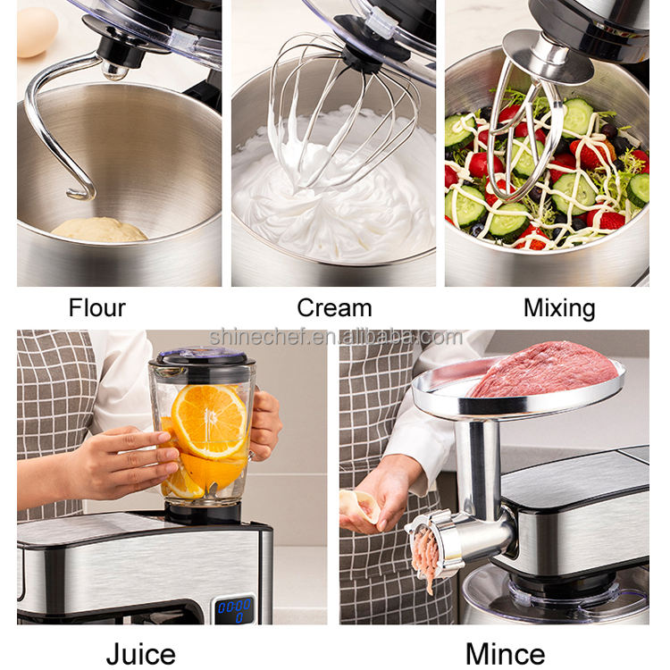 เครื่องผสมอาหารอเนกประสงค์ SOHEF 5 ลิตร 1300 วัตต์ พร้อมจอแสดงผลอัจฉริยะ พร้อมเครื่องบดเนื้อและเครื่องปั่น 3 in 1 ทำจากสแตนเลส สำหรับใช้ในบ้านและเชิงพาณิชย์