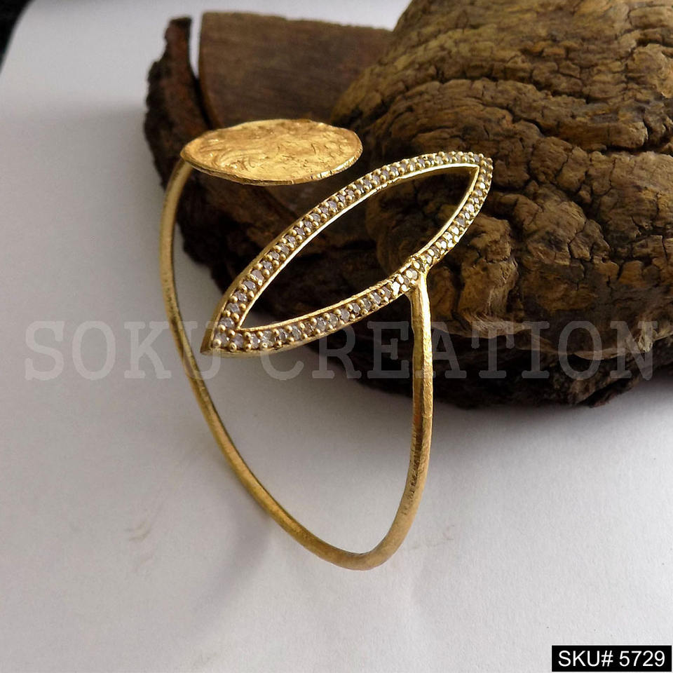 กำไลข้อมือและกำไลแบบเปิดประดับอัญมณี ดีไซน์เนอร์สำหรับผู้หญิงคริสเตียน ชุบทองคำแท้ งานแฮนด์เมด สำหรับโอกาสวันครบรอบ SKU5729