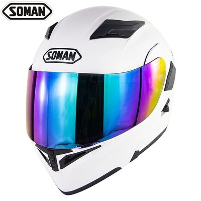 Soman หมวกกันน็อคมอเตอร์ไซค์ ABS แบบเต็มหน้าพร้อมเลนส์คู่หัวเข็มขัดแบบปลดเร็ว SM955K5ใหม่