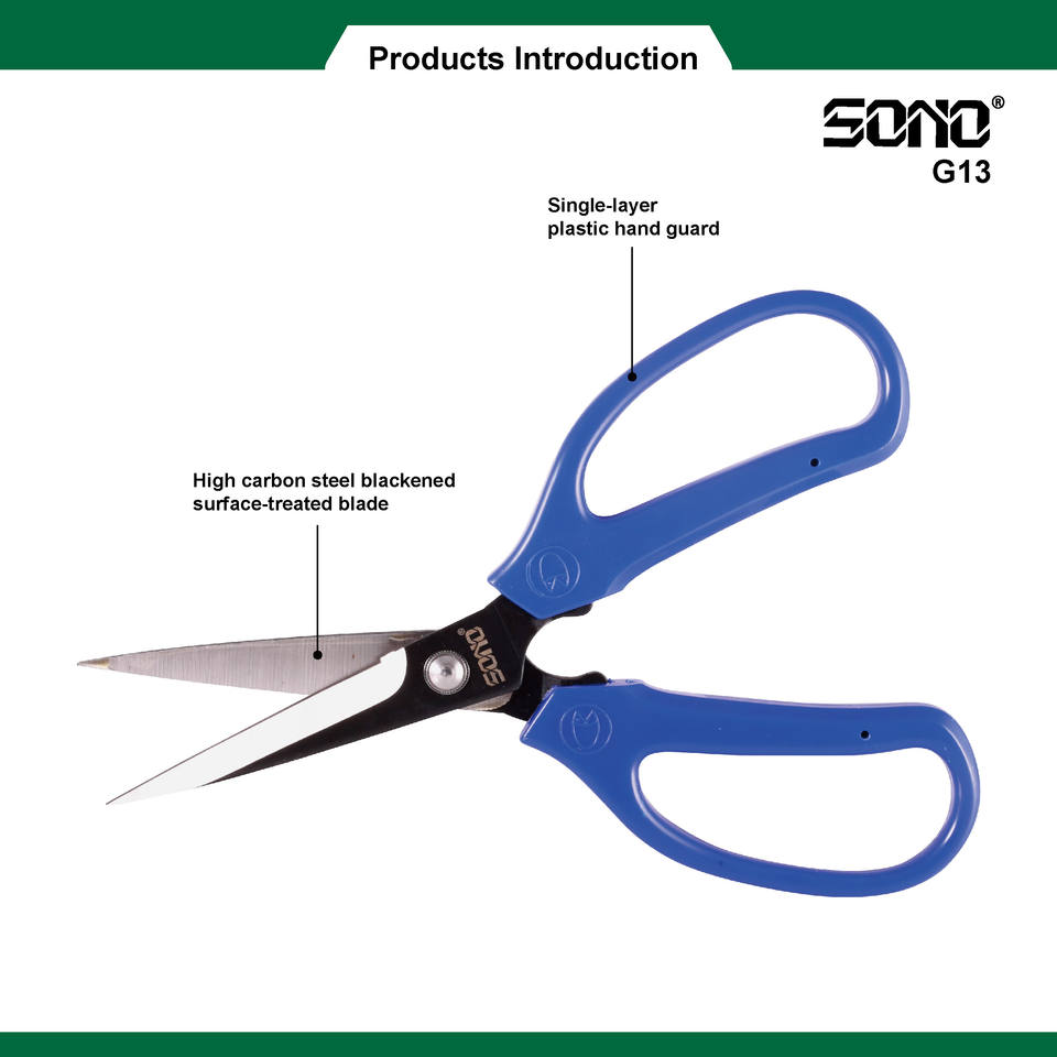 กรรไกร SONO G13 เกรดอุตสาหกรรม ใช้งานสะดวก ทนทาน ด้ามจับพลาสติก สำหรับคนถนัดขวา ใบมีดเคลือบสีดำ ขอบเรียบ
