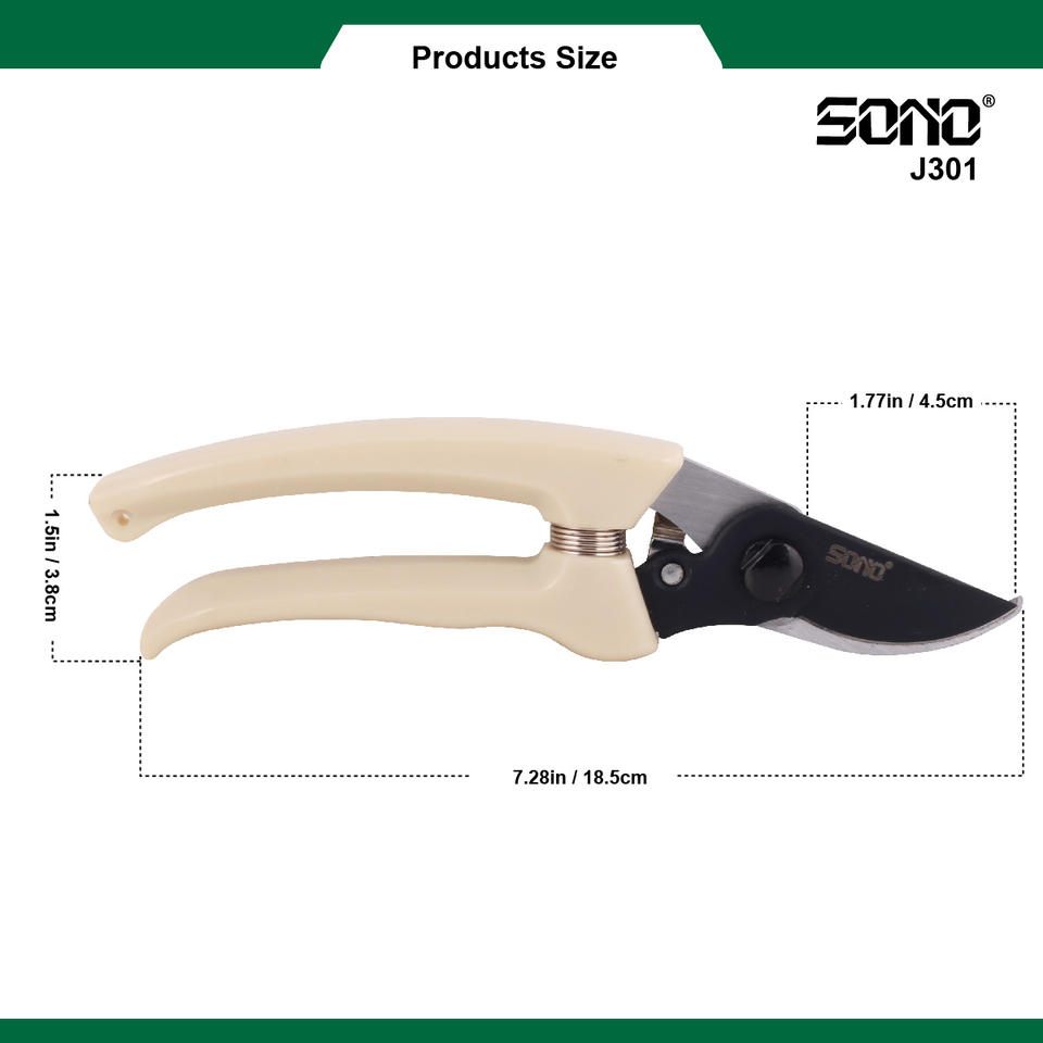 กรรไกรตัดแต่งกิ่ง SONO J301 สำหรับมืออาชีพ แบบบายพาส เคลือบ PTFE สำหรับคนถนัดขวา ผลิตจากเหล็กกล้าคาร์บอน พร้อมด้ามจับพลาสติก ABS