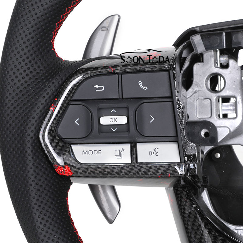 พวงมาลัยหนังแท้แบบเจาะรูครึ่งวงคาร์บอนไฟเบอร์ LED รุ่นคลาสสิก SOON TODA สำหรับรถยนต์แลนด์ครุยเซอร์ LC300 ปราโด ฟอร์จูนเนอร์ ไฮลักซ์ GR