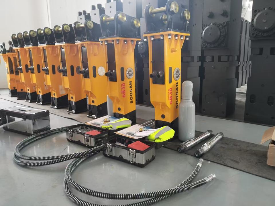 หัวเจาะไฮดรอลิก SOOSAN รุ่น SB30 แบบกล่องเก็บเสียง สำหรับทำลายหินแข็ง ใช้กับรถขุดขนาดเล็กและรถบ็อบแคท