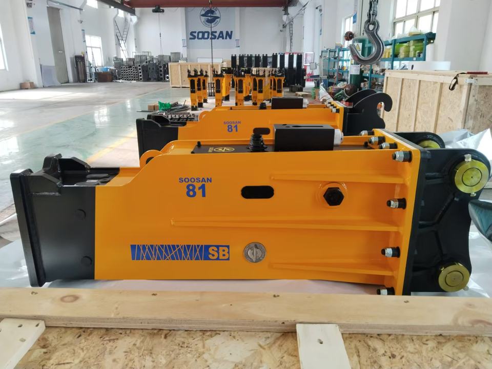 หัวเจาะไฮดรอลิกแบบกล่อง SOOSAN SB81 พร้อมระบบหล่อลื่นอัตโนมัติ สำหรับรถขุด 18-26 ตัน ใช้สำหรับงานรื้อถอนและงานเหมือง