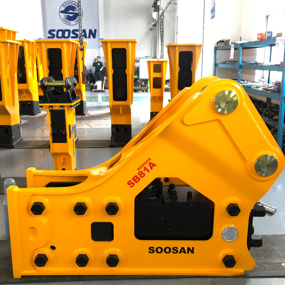 SOOSAN SB81A ค้อนไฮดรอลิกแบบติดข้าง รุ่นเงียบ พร้อมการรับประกัน สำหรับรถขุดขนาด 18-26 ตัน ใช้สำหรับรื้อถอนหินแข็ง