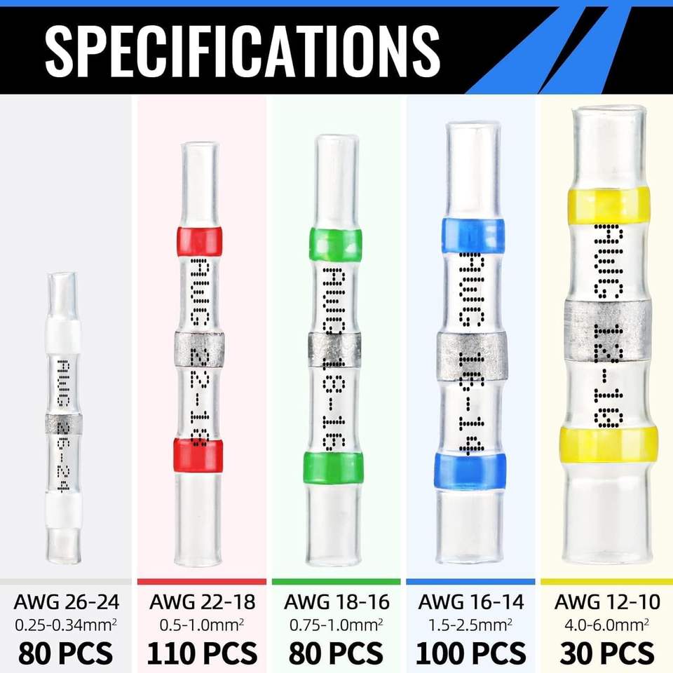 SOPOBY ตัวเชื่อมต่อสายไฟ 400 ชิ้น ปลั๊กวงแหวนกันน้ำแบบหดตัวได้ อะแดปเตอร์พีวีซี