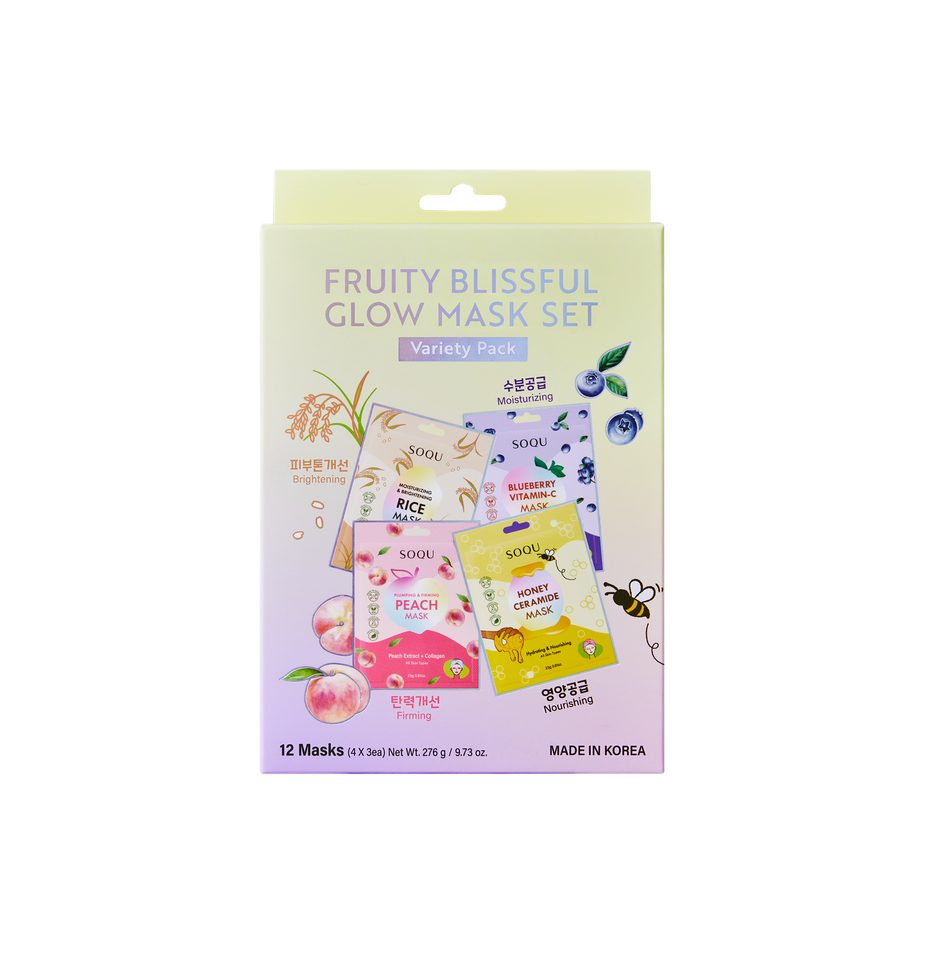 ชุดมาส์กหน้า SOQU Fruity Blissful Glow 12 ชิ้น ส่วนประกอบหลัก ข้าวและวิตามินซี