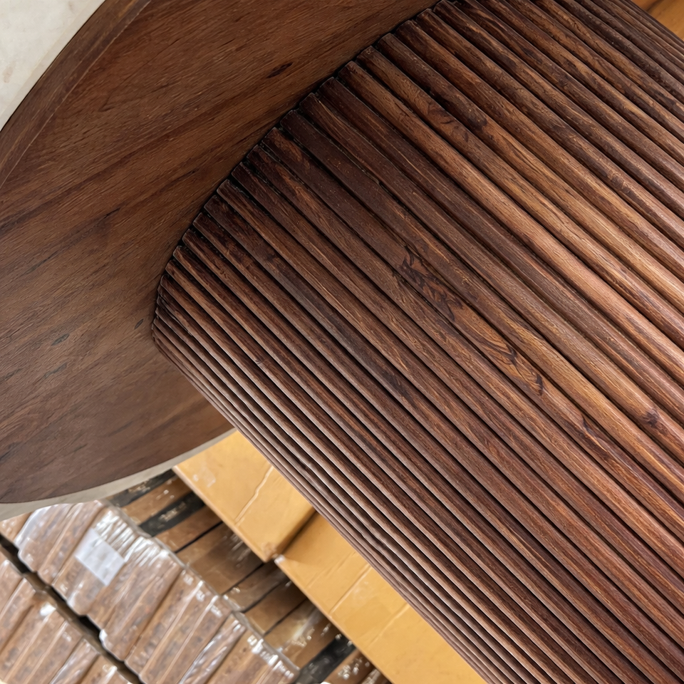 SORA Mango Wood Dining Table Marble Top | Japandi Dining Table Living Room Furniture Ribbed Base Luxury Design 8 Seater 10-Year