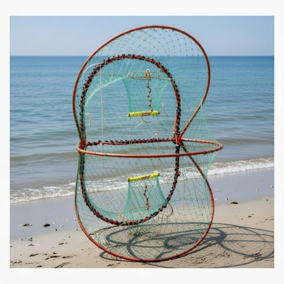 กรงดักปลาแบบพับได้ SOTAVILLE ทำจากเหล็กชุบสังกะสีความแข็งแรงสูง พร้อมเส้นใย PE แบบโมโนฟิลาเมนต์ ปมคู่ ทนต่อการขัดถู สำหรับดักกุ้งก้ามกราม ปู และปลา