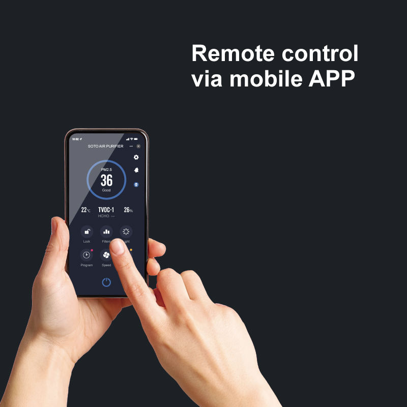 เครื่องฟอกอากาศไฟฟ้า SOTO XD พร้อมไส้กรอง HEPA และถ่านกัมมันต์ ฆ่าเชื้อด้วยรังสียูวี ควบคุมผ่านแอปพลิเคชัน พกพาสะดวก เงียบสงบ เหมาะสำหรับห้องขนาดใหญ่