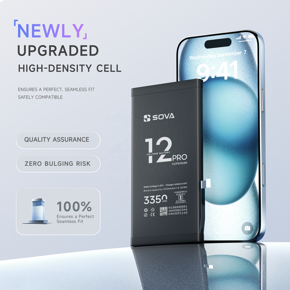 แบตเตอรี่แท้ SOVA สำหรับ iPhone 12 13 14 15 16 Pro Max ระบบ IOS18 สุขภาพแบตเตอรี่ 100% ตรวจสอบอะไหล่ที่ไม่รู้จัก แบตเตอรี่โทรศัพท์มือถือ