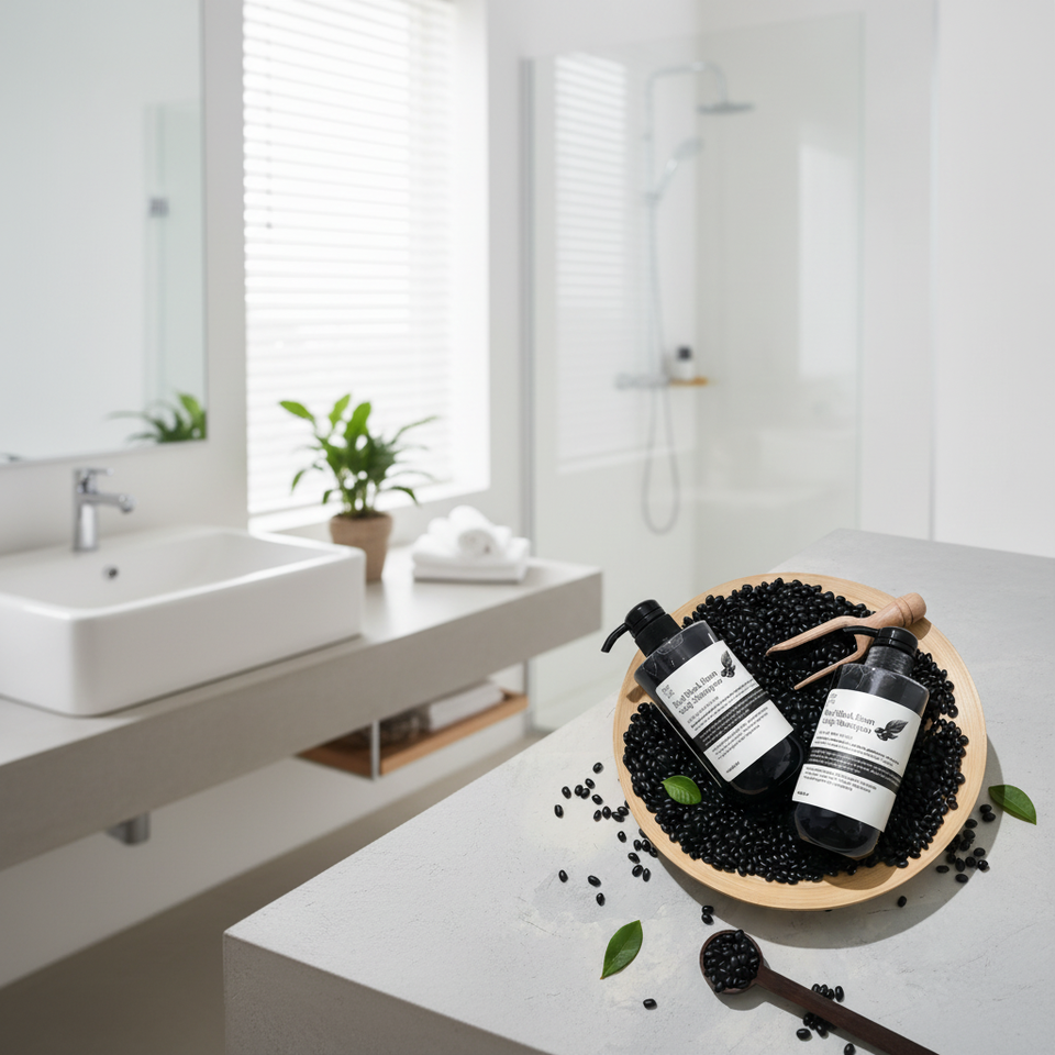 แชมพูบำรุงหนังศีรษะจากเมล็ดถั่วดำขนาด500มล., ใช้ประจำวันควบคุมความมันและให้ความชุ่มชื้นเพื่อการดูแลหนังศีรษะที่อ่อนโยนต่อสุขภาพ