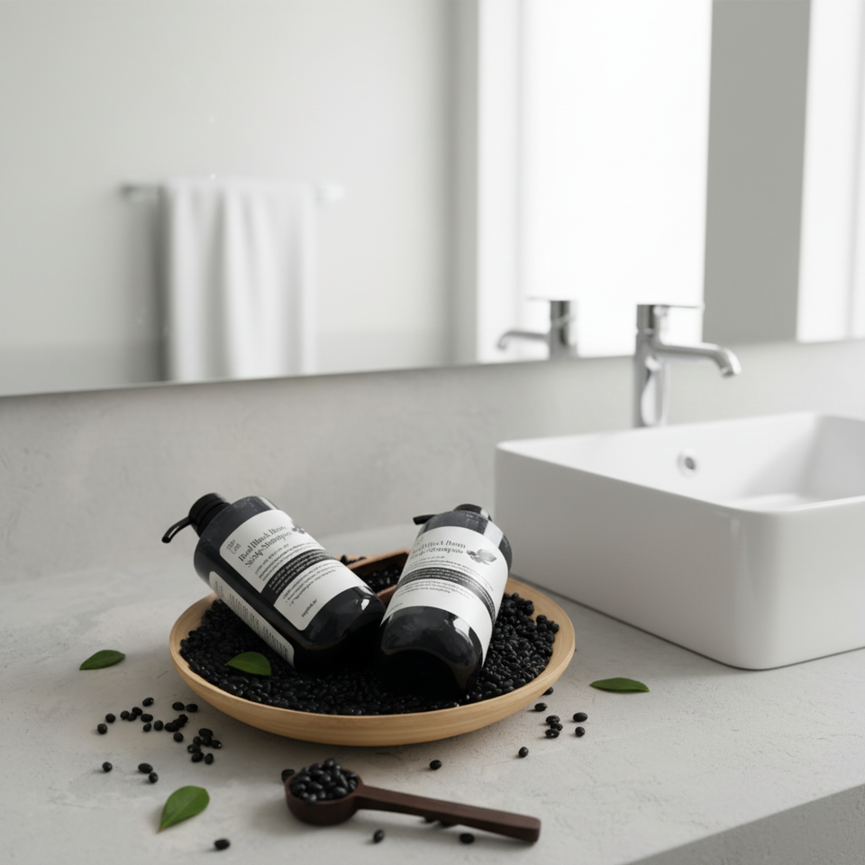 แชมพูบำรุงหนังศีรษะจากถั่วดำ500มล. สำหรับหนังศีรษะมันทำความสะอาดหนังศีรษะสุขภาพดีและผมเงางาม