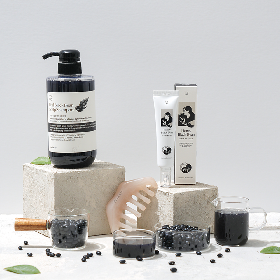 [SOY LAB] แชมพูบำรุงหนังศีรษะและอัมพูลควบคุมความมันจากถั่วดำ 500 มล. เพื่อหนังศีรษะที่สมดุลและดูแลเส้นผมอย่างอ่อนโยน