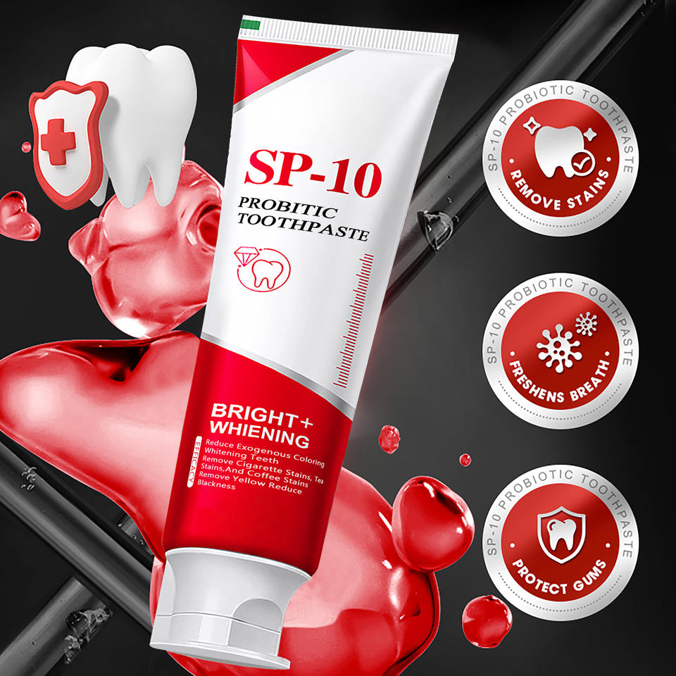 ยาสีฟันฟอกสีฟัน SP-10 สูตรโปรไบโอติก ลดคราบเหลืองบนฟัน ลมหายใจหอมสดชื่น ดูแลช่องปาก กลิ่นมิ้นท์ 120 กรัม