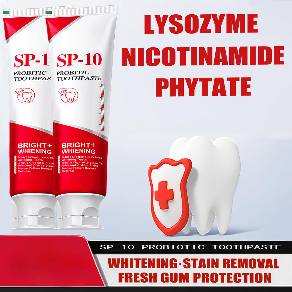 ยาสีฟันไวท์เทนนิ่ง SP-10 ผสมโปรไบโอติก สำหรับรักษาอาการกลิ่นปาก ขจัดคราบเหลือง กลิ่นมิ้นท์สดชื่น ดูแลสุขภาพช่องปาก ขนาด 120 กรัม