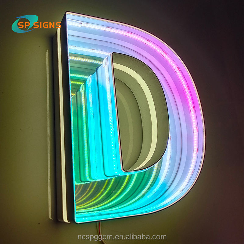 SP กระจกอินฟินิตี้กำหนดได้เอง3D ตัวอักษรป้ายสัญลักษณ์นีออนที่สะดุดตาตัวอักษร LED ช่อง LED บาร์คลับสัญลักษณ์ทางธุรกิจกลางแจ้งนำตัวอักษร