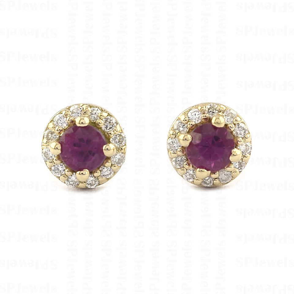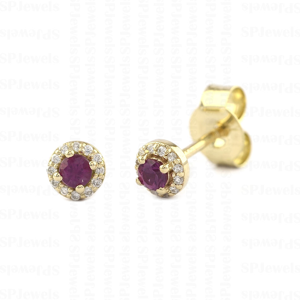 เครื่องประดับสีทอง SP สุดเก๋14K แข็งทองทับทิมกระดุมง่ามรัศมีต่างหูอินเทรนด์สำหรับงานหมั้นงานแต่งงานและงานปาร์ตี้ของขวัญ