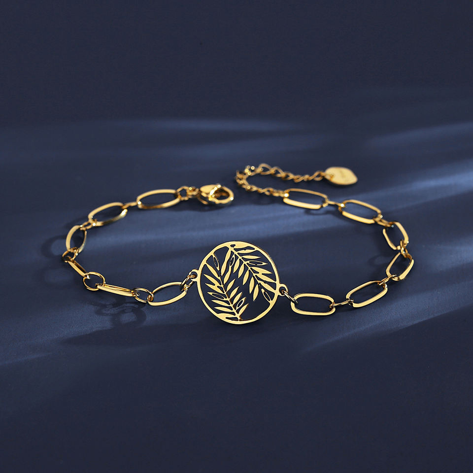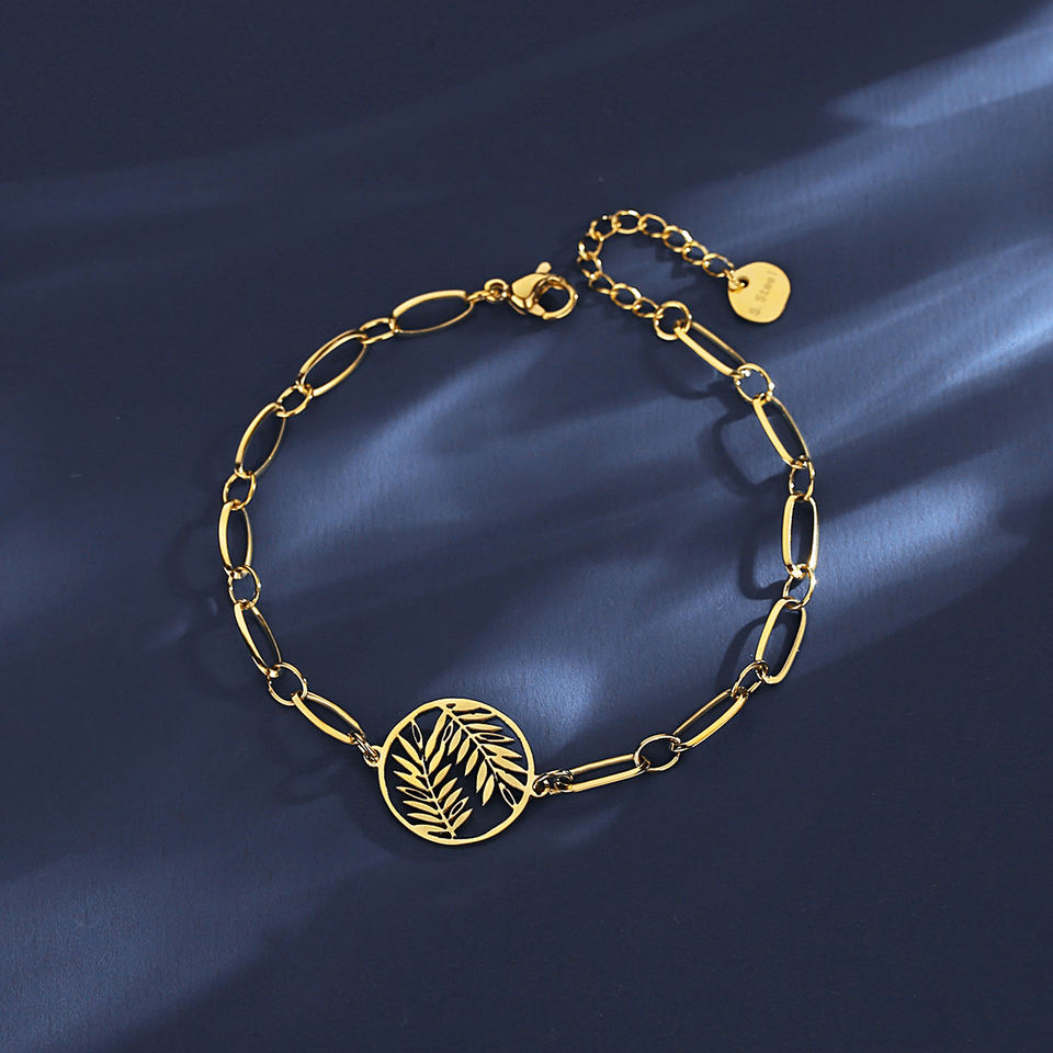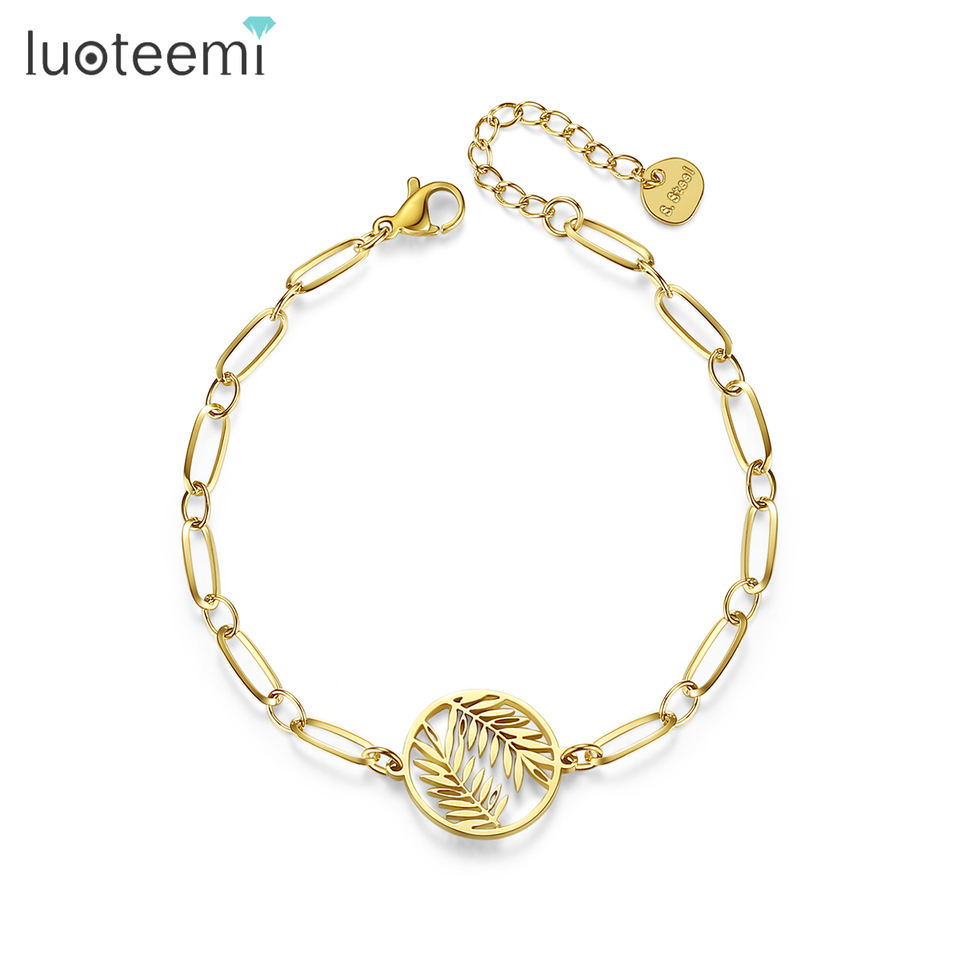 SP-LAM สแตนเลสผู้หญิง316 2021ห่วงโซ่การเชื่อมโยงชุบทองแฟชั่นใบรูปร่างสร้อยข้อมืออุปกรณ์เสริม