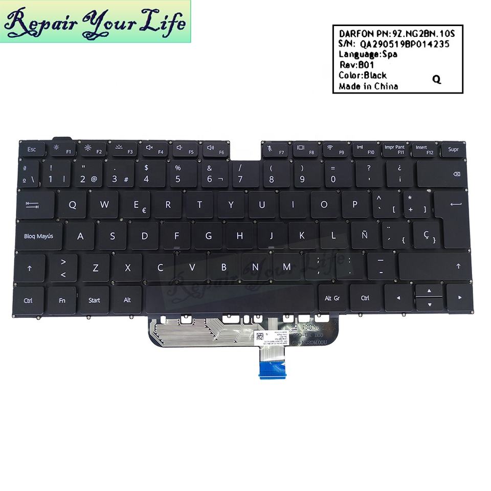 แป้นพิมพ์แล็ปท็อปแบบมีไฟพื้นหลังภาษาสเปนสำหรับ Huawei MateBook D14 D15 BOH-WAQ9HNR WAQ9HNL WAP9HNR แป้นพิมพ์โน้ตบุ๊ก 9Z.NG2BN.10S