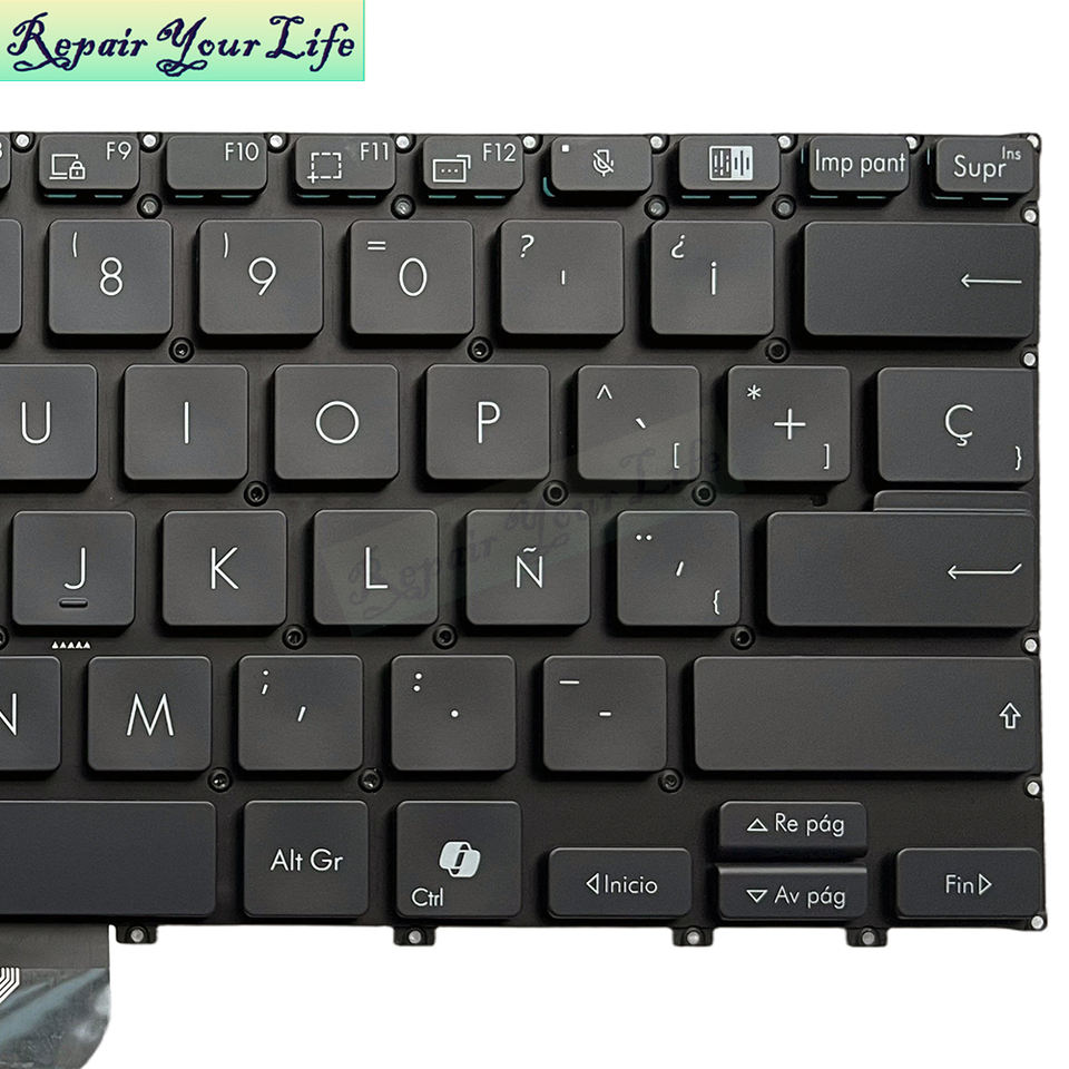 SP คีย์บอร์ดแล็ปท็อปแบบ non-backlit ภาษาสเปนสำหรับ ASUS B9 B9403 OLED 0KNX0-1821SP00คีย์บอร์ด Ai ใหม่1234ขอบสีฟ้า