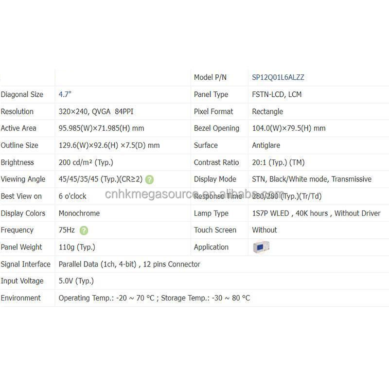 SP12Q01L6ALZZ 4.7 inch Screen 320*240 Display Lcd SP12Q01L6ALZZ Lcd Panel