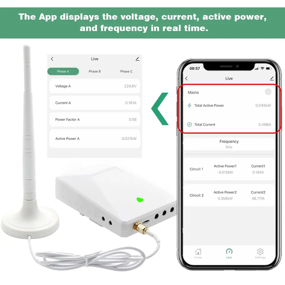 SP360 Tuya สมาร์ท WiFi สามเฟสหลายวงจร5ช่องพลังงานสองทิศทางมิเตอร์ kWh มิเตอร์วัดกำลังไฟฟ้า200A AC90-480V