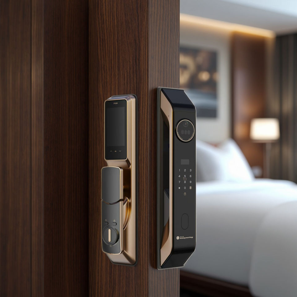 SP90 Max สำหรับซัมซุง อุปกรณ์อิเล็กทรอนิกส์ กล้องกริ่งประตูพร้อมระบบสแกนลายนิ้วมือ ระบบจดจำใบหน้า 3 มิติ ล็อคประตูดิจิตอลอัจฉริยะ