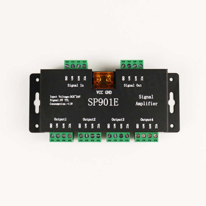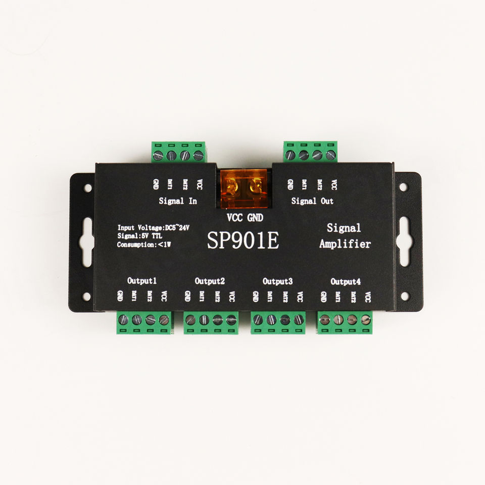 SP901E ตัวขยายสัญญาณ4CH 5V ~ 24V แผง LED เมทริกซ์ที่สามารถตั้งโปรแกรมได้แถบไฟ LED สีฝัน
