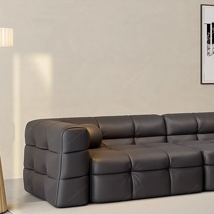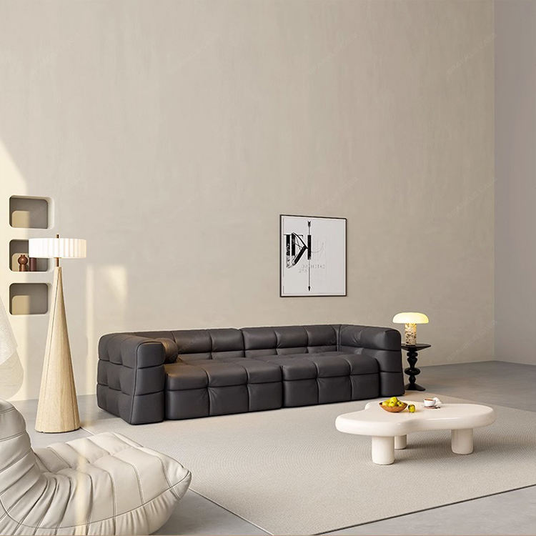 Italian Modern Tufted Lamb Wool Fabric Modular Slipcovered Sectional Three Seat Sofa Durable Black Cotton Candy Living Room