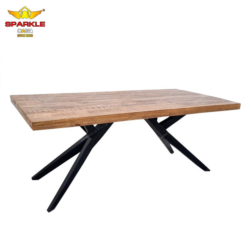 เฟอร์นิเจอร์ห้องอาหารสไตล์โมเดิร์นอินดัสเทรียล โต๊ะอาหารทรงสี่เหลี่ยมผืนผ้า ทำจากเหล็กและไม้มะม่วงแท้ สำหรับใช้ในโรงแรม